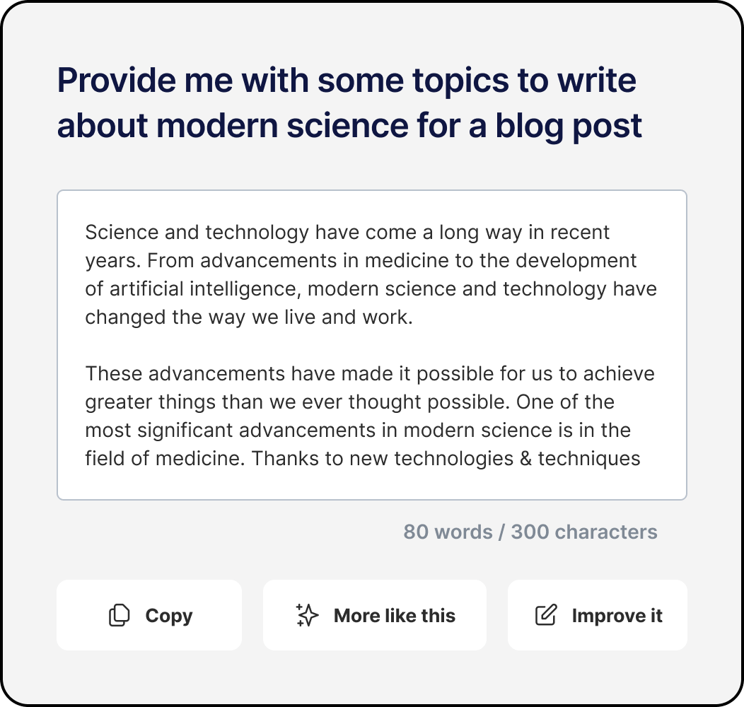 Our AI tool can generate a large volume of content quickly, making it an invaluable tool for businesses with high content demands, such as social media posts, product descriptions, and blog articles.