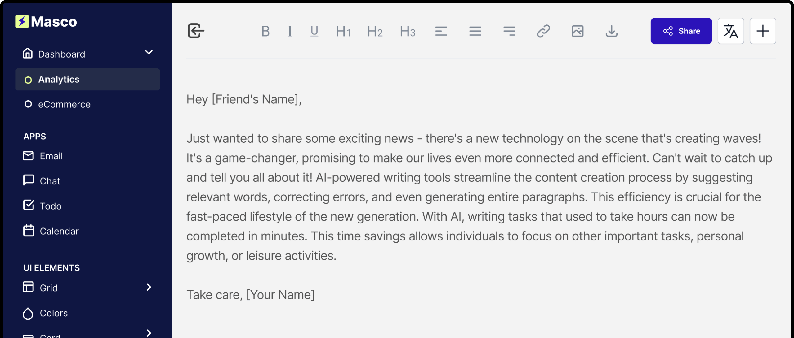 Welcome to Masco, your premier destination for AI content-generation software that pushes boundaries and sparks creativity. Our platform integrates the latest AI and delivers a new era of content creation.